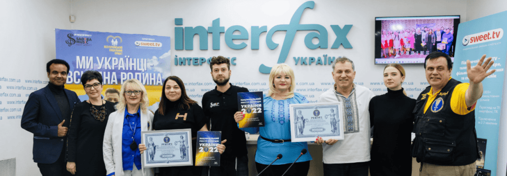 На пресконференції у Києві офіційно зафіксували рекорд України, яким відзначили Національний онлайн-кінотеатр SWEET.TV та івент-агенцію «Садиба Мьюзік» за реалізацію всеукраїнського соціального проєкту для внутрішньо переміщених осіб «Ми українці — всі одна родина». Рекорд встановили у номінації «Найбільша кількість міст проведення благодійних заходів для внутрішньо переміщених осіб».