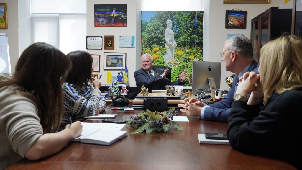 Ректор ХДУ подарував гостям інституційне видання «Чорний Лебідь в історії Херсонського державного університету, або Хроніки релокованого вишу» та персональні рефлексії представників академічної спільноти – «Херсонські есеї: жити, щоб перемагати».