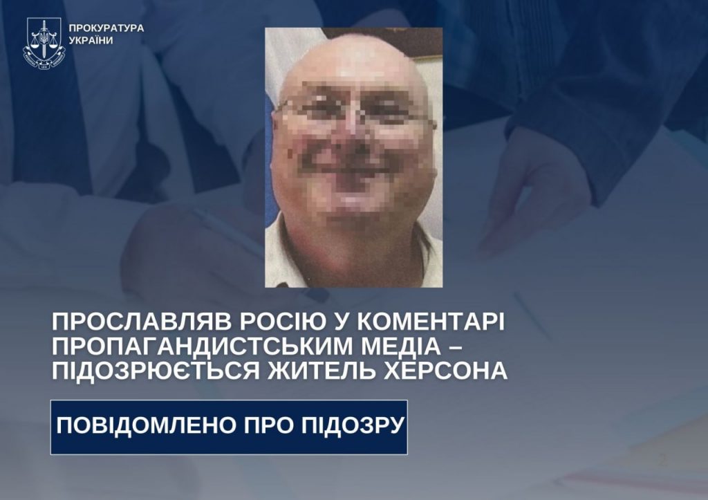 За процесуального керівництва Херсонської обласної прокуратури жителю регіону повідомлено про підозру у виправдовуванні збройної агресії рф проти України (ч. 3 ст. 436-2 КК України).