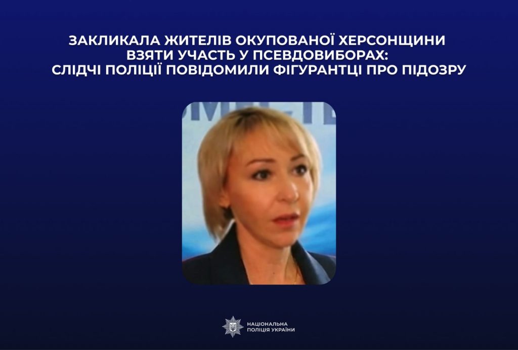 Як розповів заступник начальника слідчого управління поліції Херсонщини Чермен Тускаєв, поліцейські встановили, що наразі фігурантка проживає в тимчасово окупованому Генічеську. На початку вересня 2023 року за її участі записали відеосюжет про перебіг проведення псевдовиборів, організованих того місяця на тимчасово окупованих територіях України. У інтерв’ю фігурантка підтримала правомірність і доцільність проведення незаконних виборів, легітимність незаконно створених окупаційних органів влади та публічно закликала жителів Генічеського району взяти участь у псевдоголосуванні. Згодом цей запис представники окупаційної влади розмістили в мережі Інтернет для перегляду широкого кола глядачів.