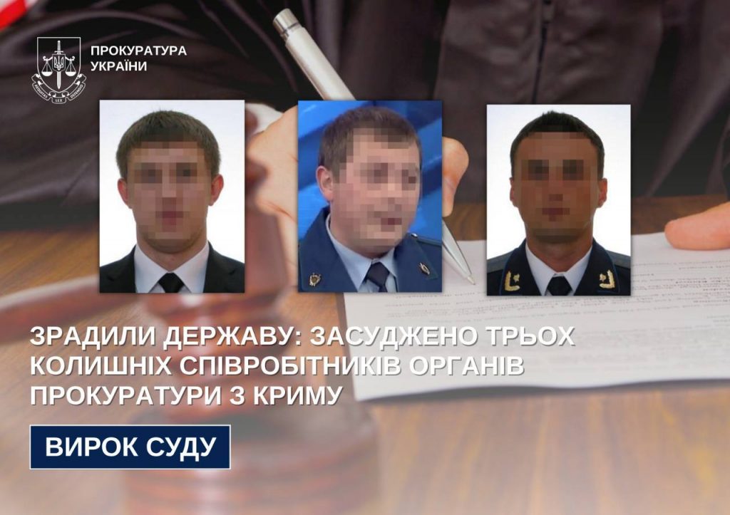 За публічного обвинувачення прокуратури АР Крим та м. Севастополя трьох колишніх прокурорів з півострова визнано винними у державній зраді (ч. 1 ст. 111 КК України). Їм призначено покарання у вигляді 13 і 14 років позбавлення волі з конфіскацією майна.
