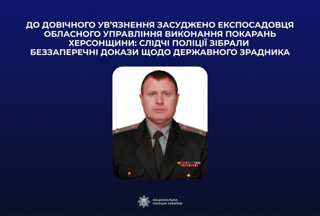 Навесні 2022 року діючий офіцер пенітенціарної системи в Херсонській області добровільно почав працювати у створеному окупантами аналогічному «відомстві». Восени того ж року він за наказом представників окупаційної влади та свого безпосереднього «керівника» забезпечив депортацію більше 1500 осіб, які відбували покарання у виправних закладах області. Працівники слідчого управління поліції Херсонщини інкримінували фігуранту вчинення державної зради та порушень законів і звичаїв війни, скоєних за попередньою змовою групою осіб. Під час досудового розслідування поліцейські зібрали достатньо доказів для обвинувачення «пенітенціарія». Наразі судовий розгляд обвинувального акту завершений і фігурант заочно засуджений до довічного ув’язнення.