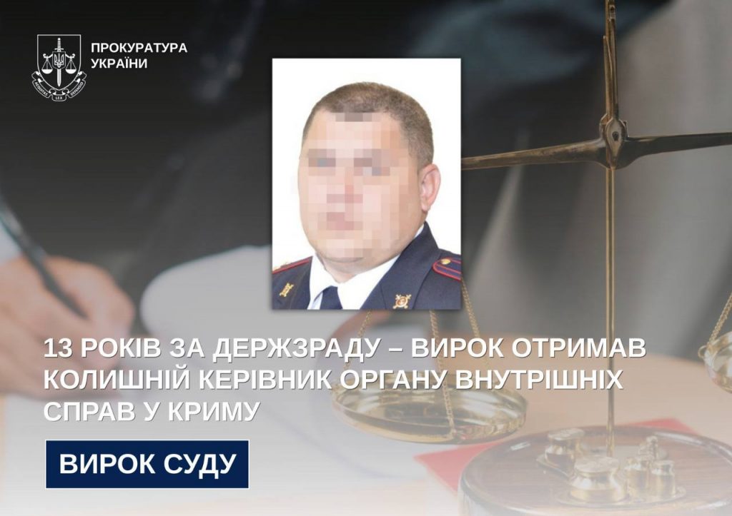 За процесуального керівництва прокуратури АР Крим та м. Севастополя заочно засуджено ексначальника Бахчисарайського РВ ГУМВС України в АР Крим за державну зраду (ч. 1 ст. 111 КК України).