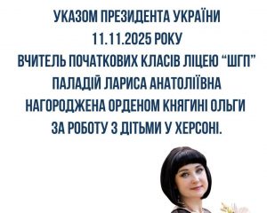 У Херсоні до 3-ї річниці звільнення міста від російських окупантів Президент України вручив державні нагороди. Серед відзначених — учителька початкових