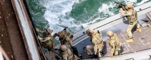 В Одеській гавані спецпризначенці Військово-Морських Сил ЗС України вчилися штурмовим та абордажним діям під час висадки на захоплене судно. Також