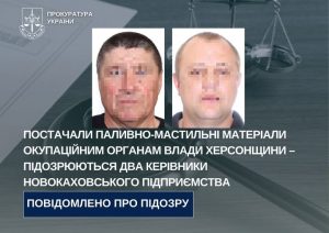 За процесуального керівництва Херсонської обласної прокуратури двом жителям Нової Каховки заочно повідомлено про підозру у колабораційній діяльності (ч. 2 ст.