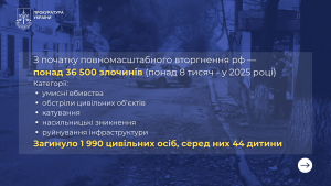 Впродовж 9 місяців 2025 року на території Херсонської області правоохоронними органами задокументовано понад 8 тисяч злочинів проти миру, безпеки людства