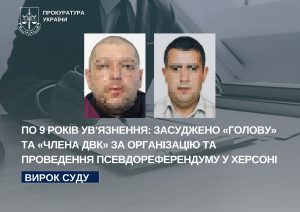 За публічного обвинувачення прокурорів Херсонської обласної прокуратури уродженців Херсонщини та Донеччини визнано винними у колабораційній діяльності (ч. 2 ст. 28,