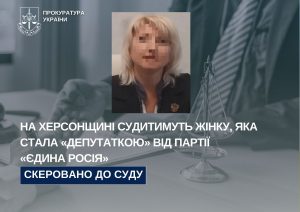 До суду скеровано обвинувальний акт щодо жительки Генічеського району, яка під час окупації вступила до партії «єдина росія» та стала