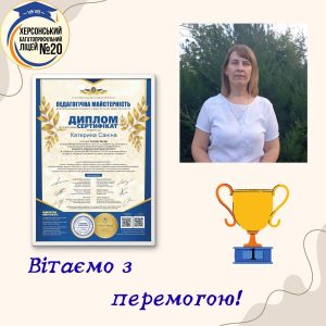 Учителька з Херсона Катерина Саніна — переможниця Всеукраїнського конкурсу педагогічної майстерності Учителька початкових класів Херсонського багатопрофільного ліцею №20 Катерина Саніна