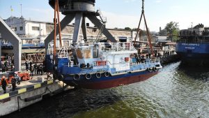 Вчора на суднобудівно-судноремонтному заводі «НІБУЛОН» у робочому режимі було спущено на воду перше судно нового проєкту Т410 – портовий буксир-штовхач. Усього