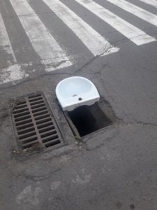 На улице Космонавтов, возле дома №49 в Николаеве неизвестные перекрыли часть ливневки умывальником. Об этом сообщили николаевцы в социальной сети