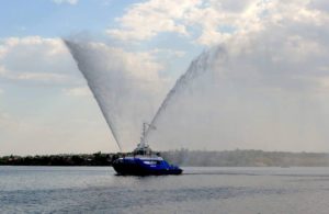 Миколаївців мають змогу відвідати водяне шоу морського буксира компанії “НІБУЛОН”. Завдяки наявності двох протипожежних лафетних стволів буксир спроможний подавати струмені
