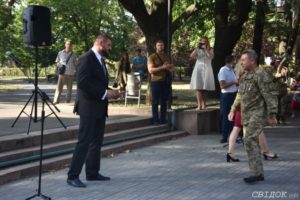 В Николаеве вручили сертификаты на открытие своего дела воинам АТО, которые победили в конкурсе проектов. Вручение проходило возле Николаевской ОГА.