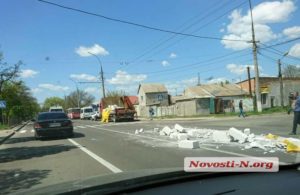 Днем в понедельник, 23 апреля, на проспекте Центральном в Николаеве с грузовика «Рено» вывалился груз. Грузовик «Рено», перевозивший газобетонные блоки,