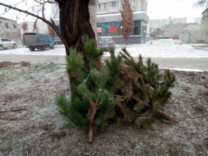 После новогодних праздников николаевцы стали выбрасывать елки. При том выносят новогодние деревья куда попало, в том числе и на аллеи.