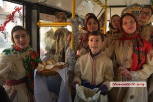 В воскресенье, 14 января, в Николаеве прошла акция – “Поездка праздничным троллейбусом № 2 с программой “Від Колядки до Щедрівки”.