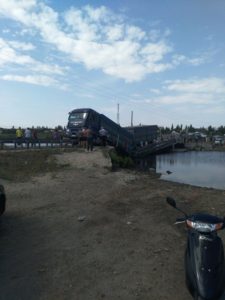 Большегрузный автомобиль MAN разрушил понтонный мост через Ингул у села Пересадовка Витовского района. Этот многострадальный мост систематически уходит под воду