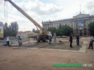 В среду, 21 июня, в центре Николаева на Соборной площади на месте памятника Ленину представители компании Solar Service начали установку