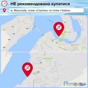 На Николаевских пляжах «Стрелка» и «Чайка» вода не соответствует стандартам на микробное загрязнение по индексу ЛКП (лактопозитивные кишечные палочки). Данное