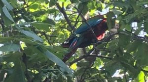 1 августа житель поселка Котовского прогуливался по улице и обнаружил огромного попугая, просто сидящего на дереве. Попугай ара поселился на