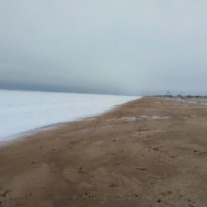 Біля села Щасливцеве, що на Херсонщині, замерзла вода в Азовському морі. Неймовірні фото та відео опублікував користувач Тимур Аджібіляков на