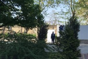 Сегодня, 5 мая, вокруг заднего двора николаевской ОГА рабочие устанавливают забор. А на первом этаже, на окна устанавливаются роллеты. Соответствующие