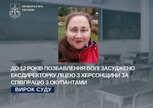 Херсонська обласна прокуратура повідомила про вирок ексдиректорці одного з ліцеїв Білозерської громади, яку визнано винною у колабораційній діяльності та пособництві