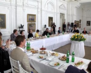 Багато херсонців на Фейсбуці поділилися світлинами зі сніданку, який губернатор Херсонщини Андрій Гордєєв сьогодні провів у Художньому музеї ім.Шовкуненка. Голова
