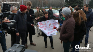 Сегодня утром под Одесской облгосадминистрацией, на проспекте Шевченко, прошел митинг протеста против назначения на должность заместителя губернатора Александра Терещука. Активисты