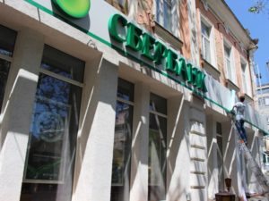 Після пікетів активістів з вивісок філій зникло слово “Росія”. У філіях Сбербанку Росії вирішили не чекати до понеділка та прибрали