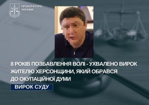 За публічного обвинувачення Херсонської обласної прокуратури 46-річного жителя області визнано винним у колабораціонізмі (ч. 1 ст. 28, ч. 5 ст.