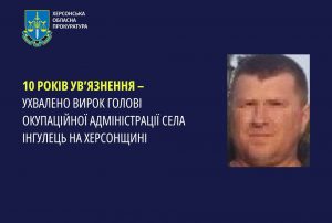 10 років ув’язнення – ухвалено вирок голові окупаційної адміністрації села Інгулець на Херсонщині За підтримання публічного обвинувачення прокурорів Олешківської окружної
