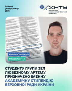 Студент Херсонського національного технічного університету (ХНТУ) Артем Любезний став лауреатом іменної академічної стипендії Верховної Ради України. Про це повідомили в