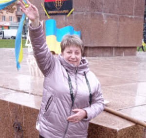 На фото. Галина Бібік 11 листопада 2022 року на площі Свободи. У день звільнення Херсона від загарбників. Освітяни Херсона за