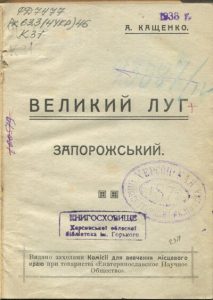 Головна бібліотека Херсонщини зберігає у своєму рідкісному фонді цінне прижиттєве видання Андріана Кащенка «Великий Луг Запорожський», що вийшло у світ