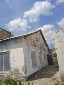 Будівля сильно постраждала від обстрілів, але вистояла. Та залишається осередком для зустрічей і спілкування мешканців. Під час війни розважальне значення