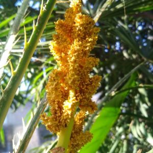 В запорожском ботаническом саду цветет средиземноморская пальма Хамеропс Приземистый или средиземноморская пальма, зацвел в оранжерее запорожского ботанического сада. Фотографией необычных