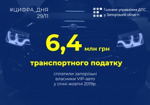 З початку року власники елітних автівок сплатили до місцевих бюджетів Запорізької області 6,4 мільйона гривень транспортного податку. Як повідомив в.